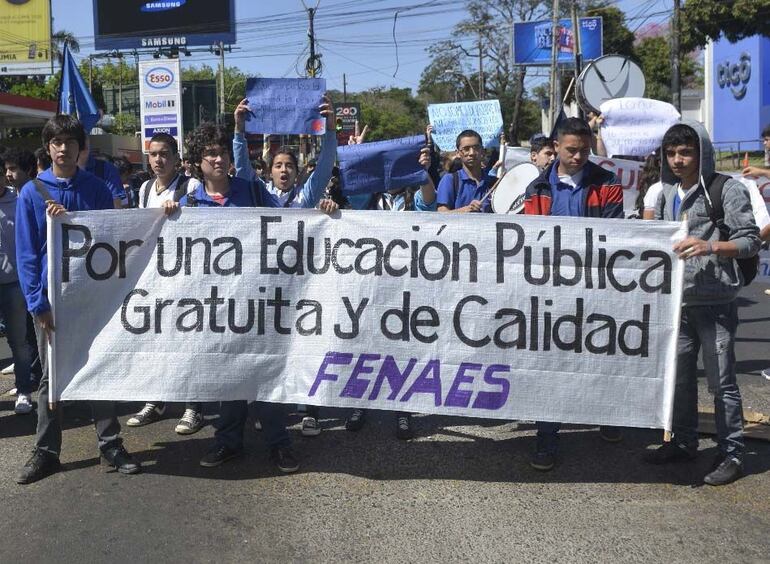 Agregó: “lo que vimos fueron retrocesos. Exigimos una educación paraguaya integral tal como establece la Carta Magna y el aumento del presupuesto para que estemos en condiciones reales de estudiar. Exigimos que no tengamos miedo a sentarnos en clase y que el techo se derrumbe”.