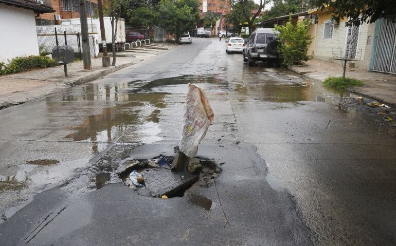 Por ejemplo, en la calle Juan de San Martín casi Capitán Víctor Yáñez Pinzón se encuentra un bache señalizado con dos ruedas apiladas encima; yendo unos metros más sobre la misma calle, se puede ver una tapa de Essap hundida que genera un gran pozo, muy peligroso para cualquier conductor. En el sitio, los vecinos han colocado una madera y una bolsa para señalizar.