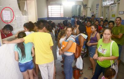Tal es así, que según se puede leer en la ventanilla, cuando el paciente acude para ficharse, primero debe averiguar en los consultorios si su médico está o no de vacaciones, caso contrario no podrá ser atendido. (Ver foto en círculo).