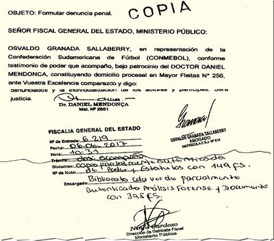 Y aunque la Fiscalía General del Estado nunca inició de oficio una investigación de los hechos de corrupción en la Conmebol, a pesar de tener a mano las evidencias, se esperaba que por lo menos la presentación de una denuncia formal la comprometiera a abrir una causa.