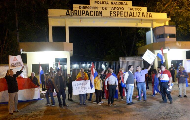 La “Comisión Escrache Paraguay” se manifestó anoche frente a la Agrupación para exigir que el exsenador vaya a Tacumbú.