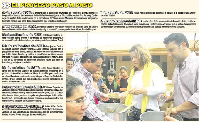 La elección del narcotraficante Vilmar Acosta Marques como intendente de Ypejhú de la mano del Partido Colorado estuvo plagada de irregularidades. Una sola persona intentó impedirlo: Julián Núñez Benítez, pero fue inútil. Jueces, fiscales y ministros terminaron arrodillados ante el poder del hoy prófugo de la justicia, mientras el denunciante fue asesinado.