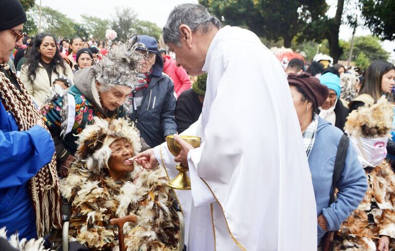 Cientos de personas participaron de la fiesta patronal en la compañía Minas, donde se realizó la tradicional fiesta del Guaikuru Ñemonde. Los promeseros, con atuendos confeccionados de plumas de gallina y con el rostro cubierto con telas o máscaras, llegaron entre la noche del 22 y la madrugada del 23 de julio al oratorio para honrar al patrono.