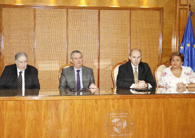 El acuerdo fue firmado por el titular del TSJE, Jaime Bestard (ANR), acompañado por los ministros miembros Alberto Ramírez Zambonini (PLRA) y María Elena Wapenka. Refrendó el documento el jefe de la delegación de la Unión Europea en Paraguay, Paolo Berizzi.