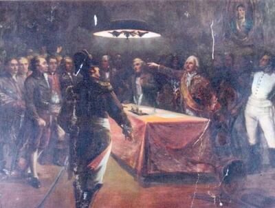 El polémico óleo en realidad correspondería a una escena de la revolución argentina, según los asesores del mandatario. El jefe de Estado también planteó sacar la reproducción de la escena de los billetes de G. 10.000. Relató que la obra era para el Gobierno argentino, pero con el cambio de autoridades de esa época la pintura no fue adquirida.