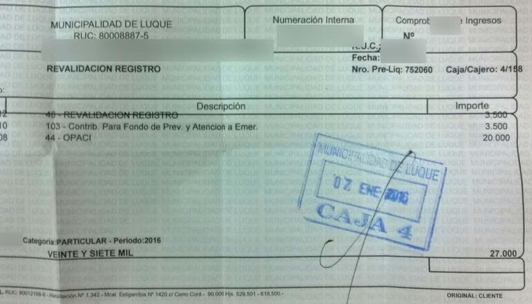 Sin embargo, a esta suma se agrega G. 20.000 para Opaci, con lo que cada contribuyente termina abonando la suma de G. 27.000.