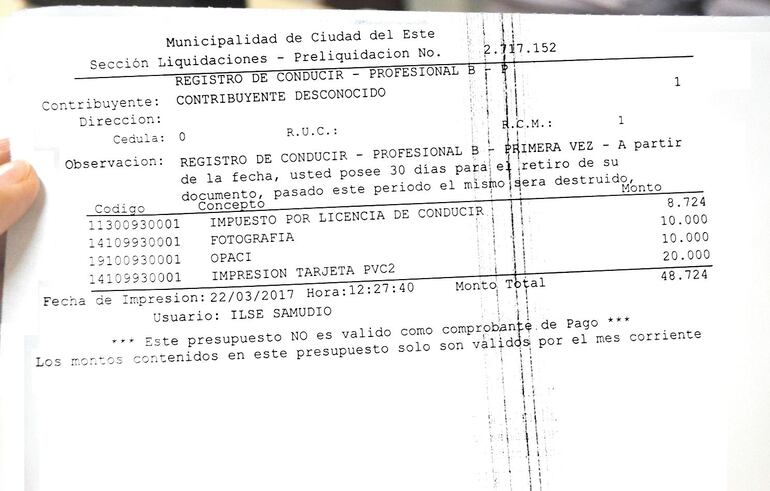 CIUDAD DEL ESTE (Mariana Ladaga, de nuestra Redacción Regional). Solamente en esta capital departamental, la Opaci recauda unos G. 2.800.000 por día al cobrar G. 10.000 por cada registro de conducir emitido por la Municipalidad.