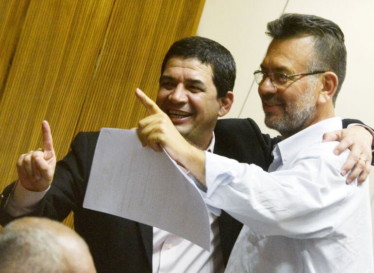El diputado Barrios y el presidente de Diputados, Pedro Alliana, se fundieron en abrazos con Velázquez a quien cinco meses atrás el cartismo por revanchismo y como una demostración de fuerza lo había sacado de la presidencia de Diputados.