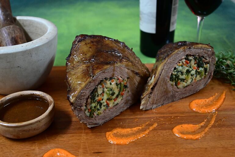 Cortar una punta de la colita de cuadril y a partir de ahí ahuecar el centro de la carne como para poder rellenarla.