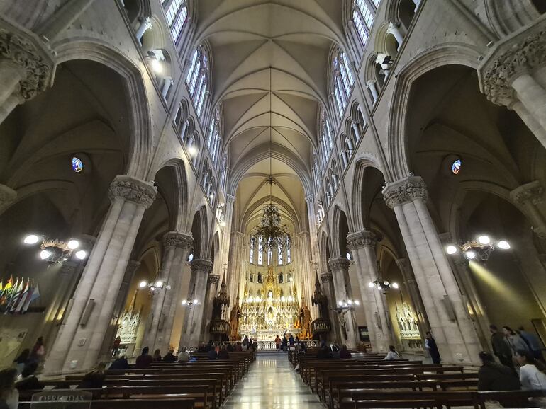 El Santuario Virgen de Luján es un impresionante edificio de estilo neogótico. La fachada principal está adornada con estatuas de santos y detalles arquitectónicos elaborados. En el interior se destaca una amplia nave con hermosas vidrieras que llenan el espacio con luz colorida.