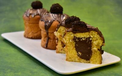 - Los que son con frutas, decorar con un poco de glasé y frutas. Los que son para rellenar, cortar en el centro con un sacabocados y rellenar con un poco de la masa retirada, decorar con baño de chocolate a gusto y brigadeiros o bombones.