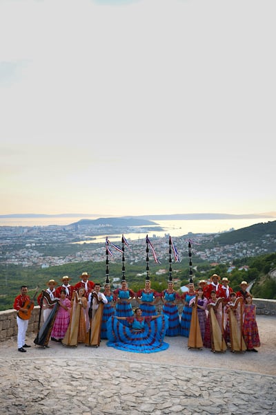 –Además de Regimiento 13 de Madrid, también fuimos invitadas por el Grupo Internacional de Danzas Jeroky Paraguay de Viena, dirigido por la bailarina Estrella Godoy de Gubo, quienes son embajadores turísticos del Paraguay por la Senatur y con quienes desde el 2024 hemos participado en varios eventos y giras folclóricas, como por ejemplo en la Charity Bazaar de las Naciones Unidas, en Viena; el Festival Internacional de Split, en Croacia; donde durante 5 días desfilamos, bailamos y cantamos al son seis arpas paraguayas en escenario, en un show muy pocas veces visto. También con Jeroky Paraguay realizamos una Gala Cultural en homenaje a los 100 años de la guarania y a los 200 años del nacimiento del compositor austriaco Johann Strauss, nada menos que en el Museo Etimológico del Palacio Imperial de Habsburgo en Viena, donde la atracción principal fue la danza de las botellas al son del arpa paraguaya del Grupo Arpa Sonrisa de Japón, además de guitarra y vos en vivo. Recibimos una larga ovación de pie de un exigente y selecto público presente.