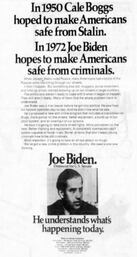 El joven Joe Biden hizo de la heroína un tema importante de su campaña electoral: de los anuncios impresos en los diarios, aproximadamente la mitad trataba de drogas y de delitos relacionados con las drogas. Su programa contra el crimen incluía «ofensiva antidrogas, más policía en las calles, reconstrucción de nuestro sistema judicial y reforma de nuestras prisiones».
