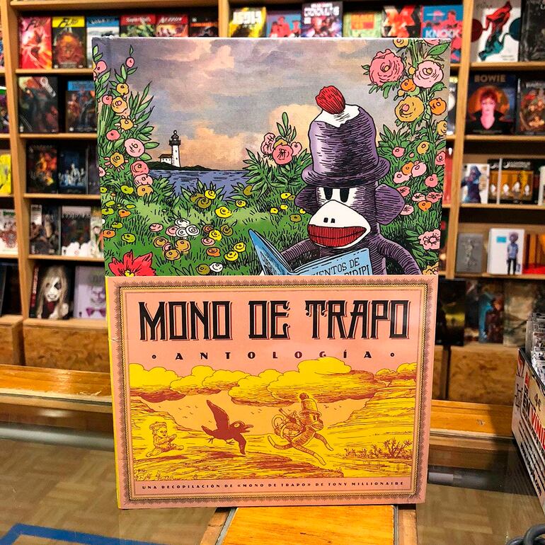 Mono de trapo (Barrett), de Tony Millionaire: Aunque suele adscribírsele al nuevo underground, el trabajo de Millionaire desborda escuelas o etiquetas y se alimenta de fuentes muy dispares. Herencia de un linaje familiar repleto de artistas y pintores, seguramente. En toda su producción, el bostoniano hace gala de buenas dosis de extravagancia para configurar un imaginario visual que discurre entre lo grotesco y el cartoon macabro de Gorey. Sus tebeos son como una tienda de antigüedades repleta de juguetes parlantes, cacharrería mágica y muñecos de trapo. Las tragedias autoconclusivas de los episodios de Mono de trapo tienen lugar en fastuosas mansiones victorianas de un Estados Unidos que ya no existe, pero todas están protagonizadas por Tío Gabby, ese mono remendado de un calcetín que da título al cómic (sockmonkey), y por su amigo Don Cuervo, pájaro de trapo con botones por ojos; personajes ideales para unas andanzas imposibles que siempre acaban mal. Juntos, viven las aventuras menos infantiles que uno pueda imaginar: incendios catastróficos, naufragios en Borneo junto a cabezas jibarizadas, matrimonios entre roedores que terminan en canibalismo, cacerías de insectos, etc. Mono de trapo nos devuelve a un tiempo en el que la infancia estaba habitada por muñecas de porcelana, caballitos de mecedora y cuentos de criaturas fantásticas.