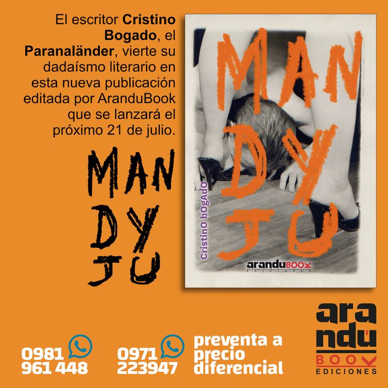 Con todos estos elementos, no hace falta tener una bola de cristal para predecir que Mandyju sorprenderá como un explosivo cóctel de sustancias aparentemente incompatibles, desde los mitos populares hasta los gestos rupturistas de la movida underground, desde la tradición hasta la vanguardia, para terminar sumándose a esa paradoja poética que es la tradición de la vanguardia. Tradición anti-tradición más que adecuada para Cristino Bogado, poeta que se declara no-poeta, escritor que encuentra su mayor influencia en la atmósfera de Paraguay, o, para citar sus propias palabras, en «el environment parawayensis, su ritmo, su murmullo variopinto y jopara, su humor cínico, un ser –de moléculas bellas– que de alguna manera sobrevivió al agujero negro del estronismo».