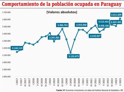 La fuerza de trabajo registró un aumento, tanto en el comparativo interanual como intertrimestral. Con respecto al mismo segundo trimestre, pero del año 2022, se observa un aumento de unas 127.000 y alrededor de 95.000 más en la relación del primer y segundo trimestre de este año 2023, respectivamente.