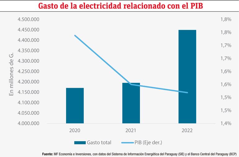 En términos de consumo final, la electricidad generada en Paraguay se distribuye entre los sectores industrial, comercial y doméstico. A pesar de su relevancia en la generación de energía, su participación en el consumo final sigue siendo limitada. En 2022, el uso de la electricidad representó el 19% del total, mientras que los derivados del petróleo y la biomasa ocuparon un lugar predominante cercano al 80% en la estructura energética del país (“Breve reseña del sector de energía en Paraguay”- BID). Esto revela una configuración poco sostenible, ya que la dependencia de combustibles fósiles y biomasa tiene implicancias negativas de eficiencia energética.