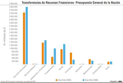 Transferencias fue otro rubro de expansión significativa, que pasó de G. 468.097 millones a G. 991.755 millones, con alza de G. 523.658 millones (111,9%).