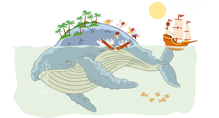 ¡Lo que habían creído un islote no era en realidad sino el lomo de una gran ballena!