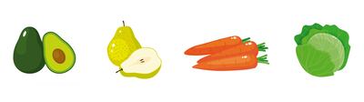 1. Aguacate 2. Berenjena 3. Coco 4. Uvas 5. Pera 6. Frutilla 7. Piña 8. Ban ana 9. Zanahoria 10. Ajo 11. Sandía 12. Cebolla 13. Repollo 14. Limón 15. Durazno 16. Tomate