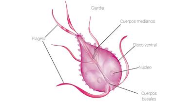 2 Observa el ciclo de vida de la Giardia lamblia y completa las oraciones.