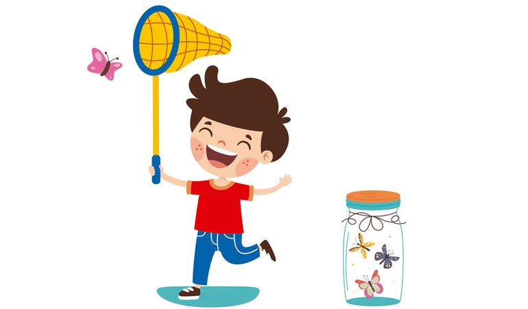 3. Para los animalitos que vuelan, como las mariposas, se puede confeccionar con ayuda de un adulto cazainsectos con mango de escoba, tela vieja y alambre. Para la colecta practicar mover con la mayor velocidad posible la red hacia el insecto, algunos son muy rápidos.