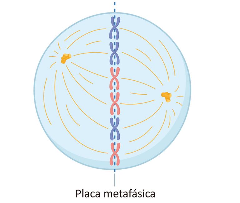 Es una fase breve en la que todos los cromosomas se encuentran situados en el ecuador (parte media) de la célula, formando una figura muy característica llamada placa ecuatorial.