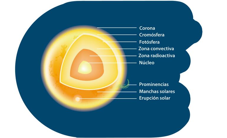 Observa la estructura del Sol. Aprende las capas y sus características.