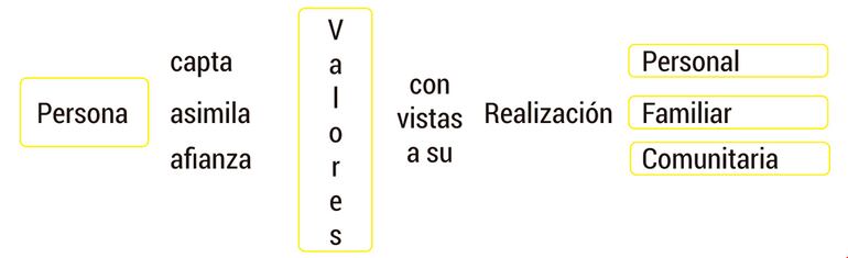Dentro de un proceso evolutivo de dependencia e independencia, que se va dando en las diferentes etapas de la vida —niñez, adolescencia y en la etapa de la juventud—, se precisan las luces de los valores para orientar mejor la vida; es decir, la persona se va forjando un mundo de valores con vistas a su realización, dentro del marco del sentido mismo de la vida, cuya finalidad es la de trascender, ser más persona, y consecuentemente realizarse.