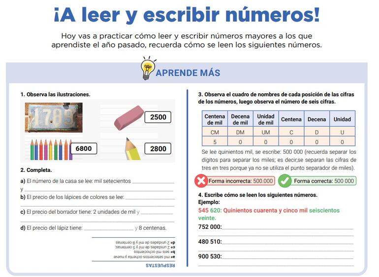Hoy, vamos a continuar nuestro camino en el aprendizaje de los números. Ya conocemos los más sencillos, pero hoy vamos a enfrentarnos a números mucho más grandes. No se preocupen, que con algunos trucos y mucho ejercicio, todo será más fácil de lo que parece. A lo largo de esta actividad, vamos a aprender cómo leer, escribir y entender números grandes, hasta la centena de millar. ¡Así que prepárense, porque vamos a poner a prueba nuestra capacidad de leer y escribir números naturales de manera comprensiva!