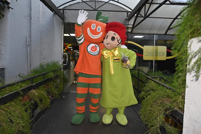 En el marco de las celebraciones por su cumpleaños, el Abastito, muñeco oficial del Abasto Norte, realiza una “gira” por los medios de comunicación. Esta mañana, fue recibido por el Pintorcito en las instalaciones de ABC Color, y juntos repartieron naranjas a los colaboradores presentes de todas sus plataformas y secciones.