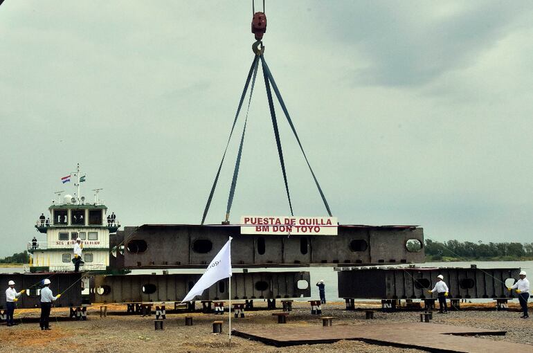 El “Don Toyo”, que será totalmente construido en Paraguay en el Astillero Aguapé de Líneas Panchita G, tendrá 119,9 metros de eslora, 30 metros de manga y dos motores Yanmar de 1.500HP cada uno, lo cual le permitirá transportar 7.500 toneladas de cargas contenerizadas y volumen nominal de 906 contenedores de veinte pies.