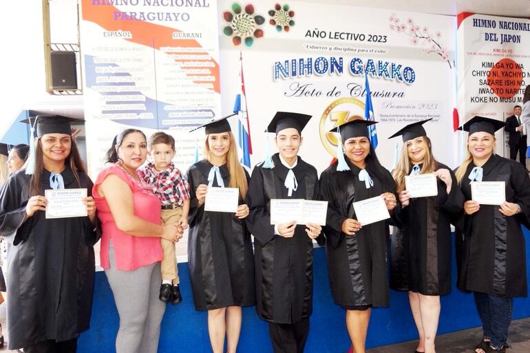 Los flamantes egresados de los cursos de becas-modulares estuvieron acompañados de sus padres, amigos, familiares y docentes de Nihon Gakko.