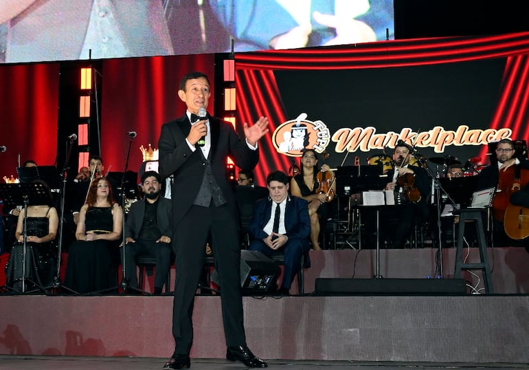 En medio del protocolo el público fue sorprendido por una aparición artística: músicos surgieron de entre los invitados, guiados por un diseño de luces, dando paso al show del tenor Jorge Castro, quien brindó una presentación potente y emocionante con el acompañamiento de 40 músicos de orquesta sinfónica y 40 bailarines que aportaron color y energía a la puesta.