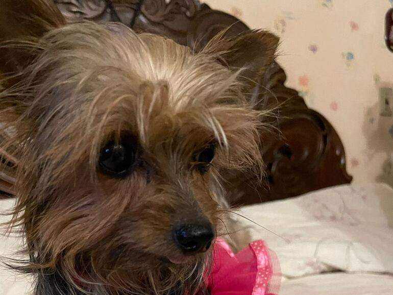 Es de la raza Yorkshire y tiene cuatro años.
