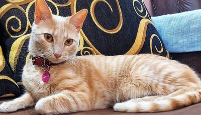 Su pelaje es rubio atigrado, llevaba un collar bordó y plaquita rosada con su nombre cuando se perdió en Andrade y Rogelio Benítez, del barrio Herrera, zona de la Municipalidad de Asunción.