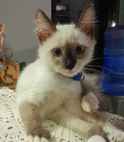 Esta gatita de cola corta tiene apenas 3 meses de vida.