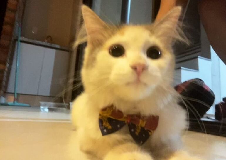 Con este moño fue hallada esta bella mascota cuando la rescataron buenos samaritanos. Si la reconocen por favor llamar al 0981 545 456.