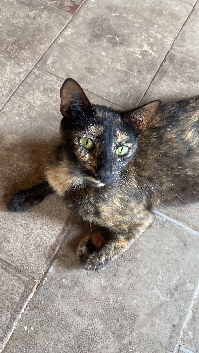 La gata Clío es de tamaño mediano y de color predominante marrón oscuro. Sus dueños la definen como “muy habladora, pero temerosa”.