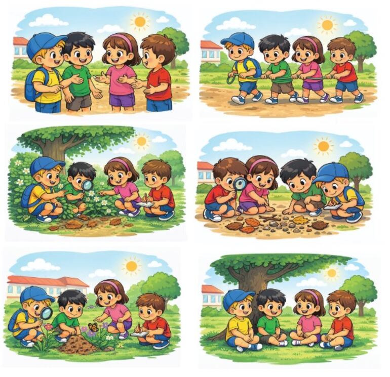 «Hoy el árbol nos prestó su sombra para descansar. Las hojas secas nos contaron que antes eran verdes y vivían en lo alto. Las hormigas trabajaban sin descanso y nosotros aprendimos a observar con atención para descubrir los pequeños secretos escondidos en el patio de nuestro colegio».