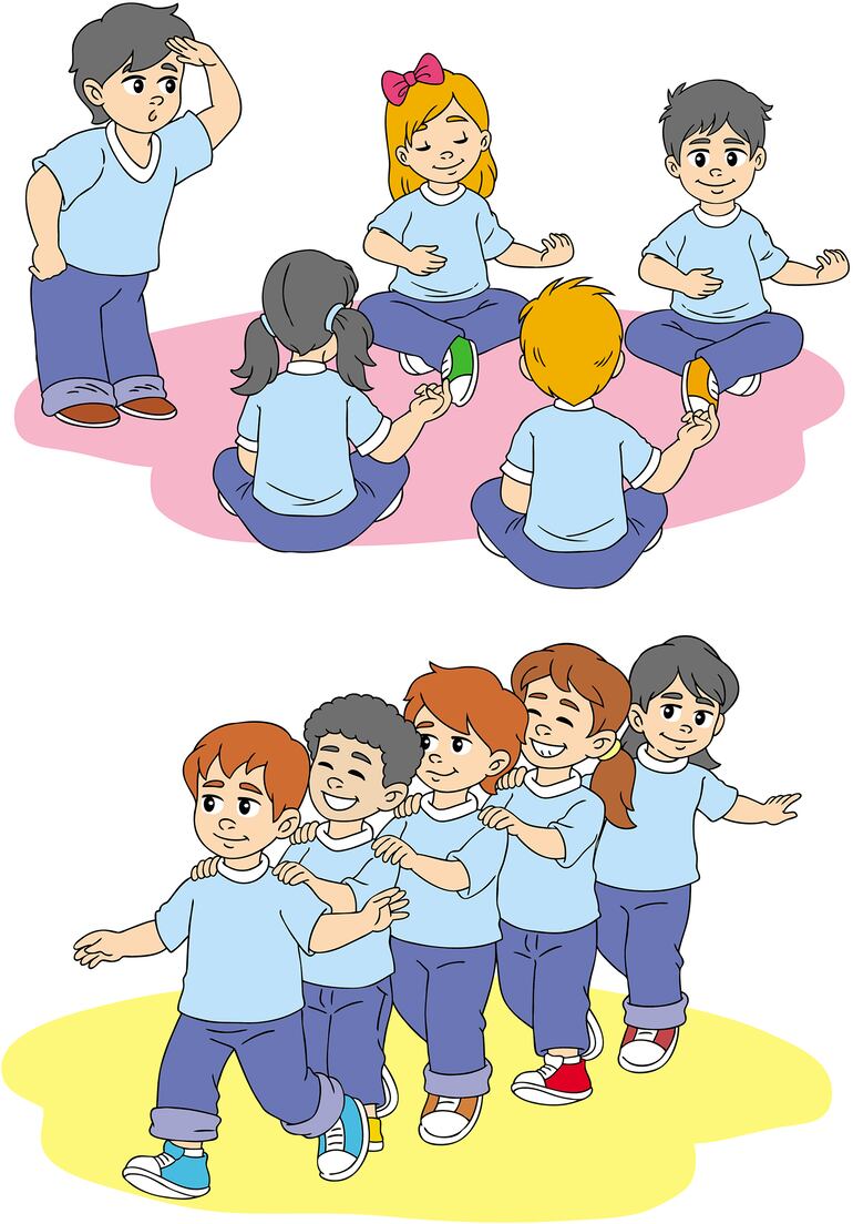 Todos los niños se ubican sentados en el suelo, formando un círculo. La profe elige a un compañero, quien será el que adivine al que hace de director de orquesta. La profe pide al elegido que se aleje de la ronda, mientras indica a otro compañero que realice una serie de movimientos, simulando varios instrumentos musicales y el resto del grupo lo imitará, pero observando de manera discreta. En un determinado momento el docente le pide al niño que se alejó, que ingrese a la ronda, mientras todo el grupo se encuentra haciendo los movimientos, este intentará en dos oportunidades adivinar quién es el director de orquesta. Una vez que lo adivine, se hará el cambio del que adivina y el director de la orquesta.