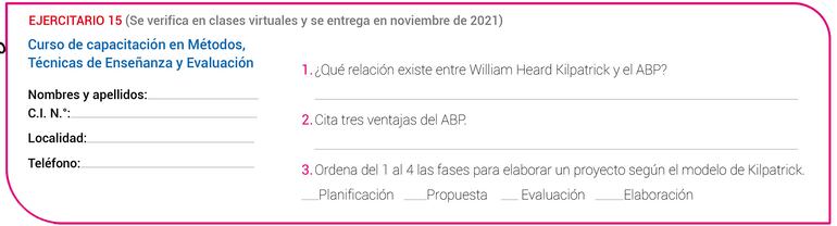 Aquella metodología en la que el alumno va resolviendo diferentes cuestiones que se ha planteado de la manera más autónoma posible, en un contexto de interdisciplinariedad, que culmina con la elaboración de un producto que puede ser expuesto al resto de la comunidad educativa. Postula la idea de que el aprendizaje se vuelve más relevante y significativo si parte del interés del estudiante. Según Kilpatrick, hay cuatro fases en la elaboración de un proyecto: la propuesta, la planificación, la elaboración y la evaluación; y es el estudiante quien debe llevar a cabo estas cuatro fases y no el profesor.