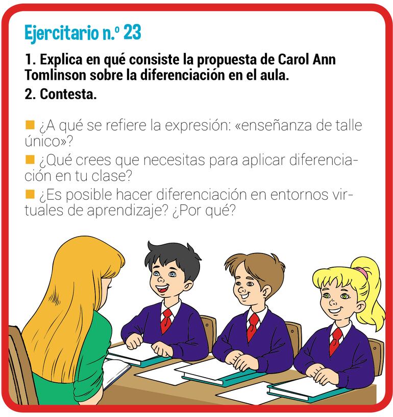 Fuentes: TOMLINSON, C. 2005. Estrategias para trabajar con la diversidad en el aula. Paidós SAICF. Buenos Aires, https://bit.ly/38yu7HO