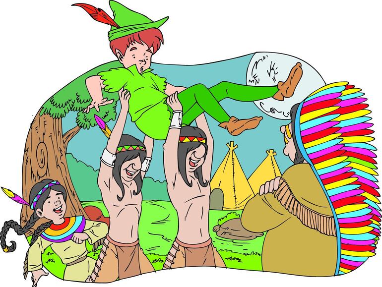 La vida de Peter Pan transcurría junto a la de la tribu, y no tenía de qué quejarse pues eran muy amables con él.