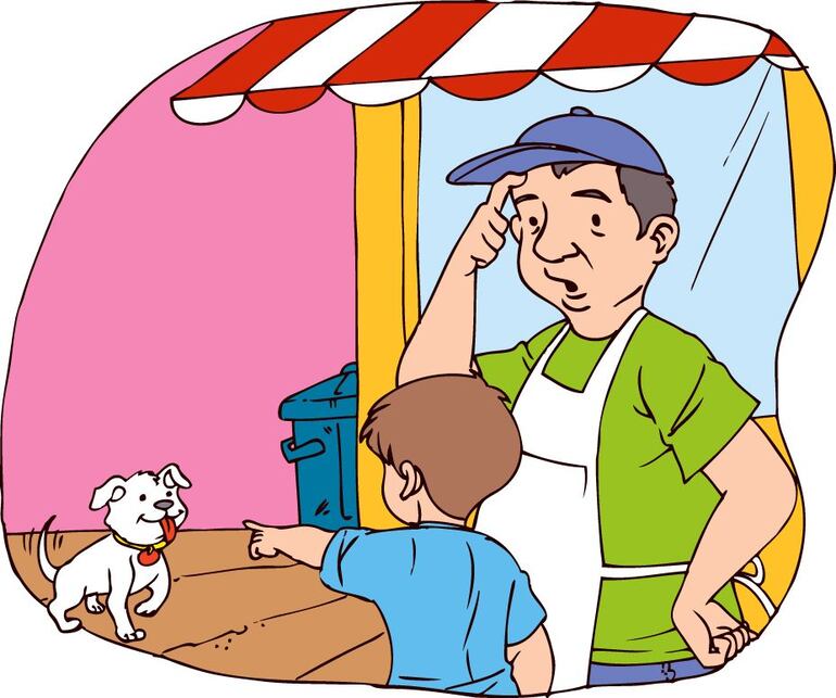 El niño se emocionó mucho y exclamó: « ¡Ese es el perrito que yo quiero comprar!»