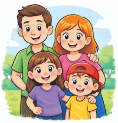 Lorena vive en una casa pequeña pero muy alegre junto a su familia. Su mamá se llama Laura y le encanta cocinar. Todos los domingos prepara un delicioso almuerzo que comparten en la mesa. Su papá, Carlos, trabaja como carpintero y a veces les enseña a sus hijos a construir pequeños juguetes de madera.