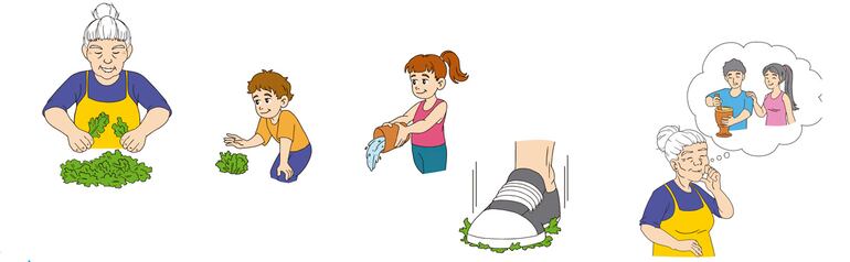 ___ De esta manera la anciana habla sola mientras escoge los medicamentos para los enfermos.