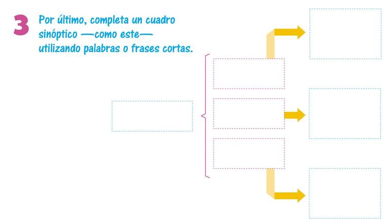 3. Por último, completa un cuadro sinóptico utilizando palabras o frases cortas.