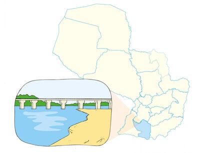 Al sur: con el río Paraná, que establece el límite con la Argentina, específicamente, con la provincia de Corrientes.