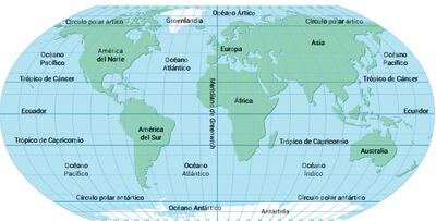 También hay líneas que van de arriba hacia abajo, como si unieran el polo norte con el polo sur. Se llaman meridianos. El meridiano principal es el de Greenwich, y con él medimos la longitud, que indica si un lugar está hacia el este o hacia el oeste de ese meridiano.